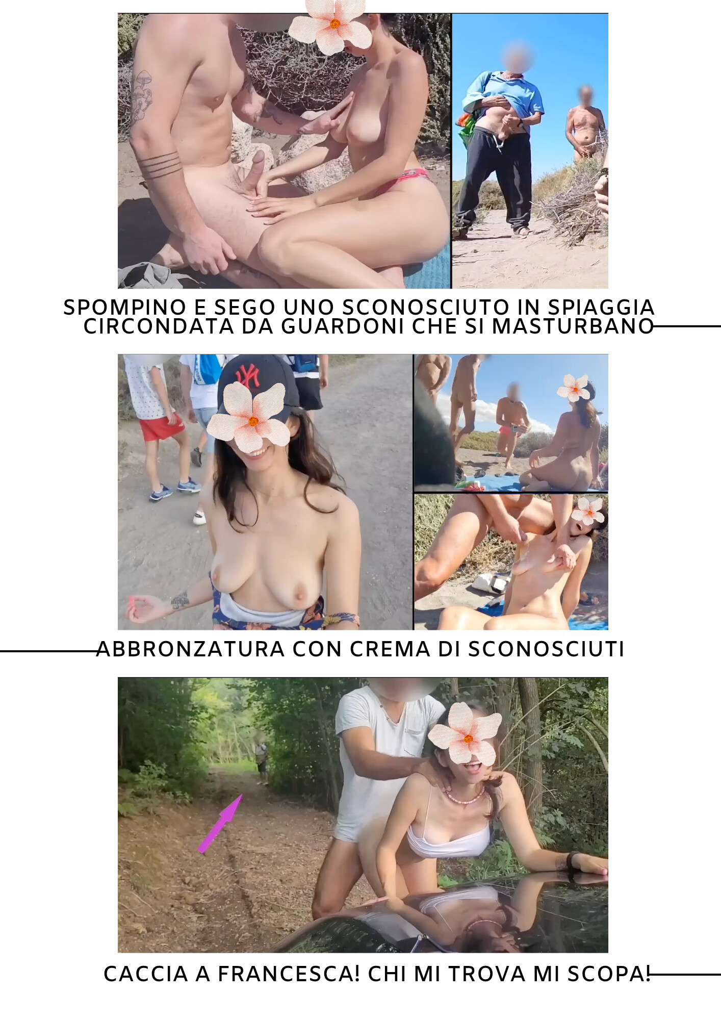 *PAZZIA OUTDOOR* SEGO e mi faccio SBORRARE ADDOSSO da dei GUARDONI ESIBIZIONISTI e faccio la TROIA mostrando le TETTE a persone a CASO per la strada! Video IMPERDIBILE! Vi porto con me in un'aventura REALE PUBLIC, prima cammino per la strada MOSTRANDOMI a persone a caso che incontro, poi mi sdraio NUDA e aspetto che dei GUARDONI ESIBIZIONISTI si avvicinino per MASTURBARLI e farmi SBORRARE ADDOSSO!